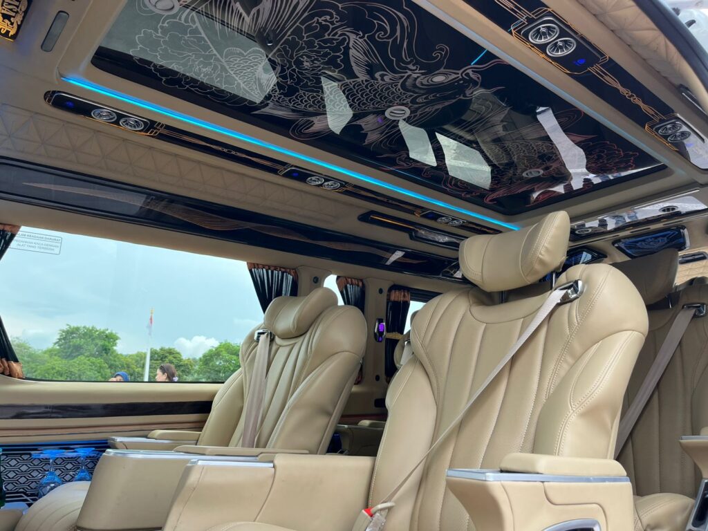Tak hanya itu, kabin juga dilengkapi dengan TV OLED Sony 32 inci, coolbox Otto Klasse, meja bar, hingga ruang karaoke custom dari RC Variasi. Sentuhan plafon akrilik dengan motif ikan koi, batik Borneo, dan burung enggang menghadirkan nuansa khas Kalimantan yang kental.