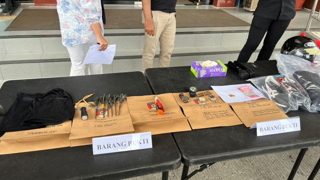 “Setelah menetap di kos, sejak tanggal 9 hingga 16 September, para pelaku mulai melancarkan aksinya. Modus yang digunakan adalah menyasar rumah kosong di siang hari dengan cara mengetuk pintu. Jika ada penghuni rumah, mereka pura-pura pergi. Namun bila tidak ada jawaban, mereka langsung membobol pintu menggunakan obeng dan tang,” jelas Kapolresta.